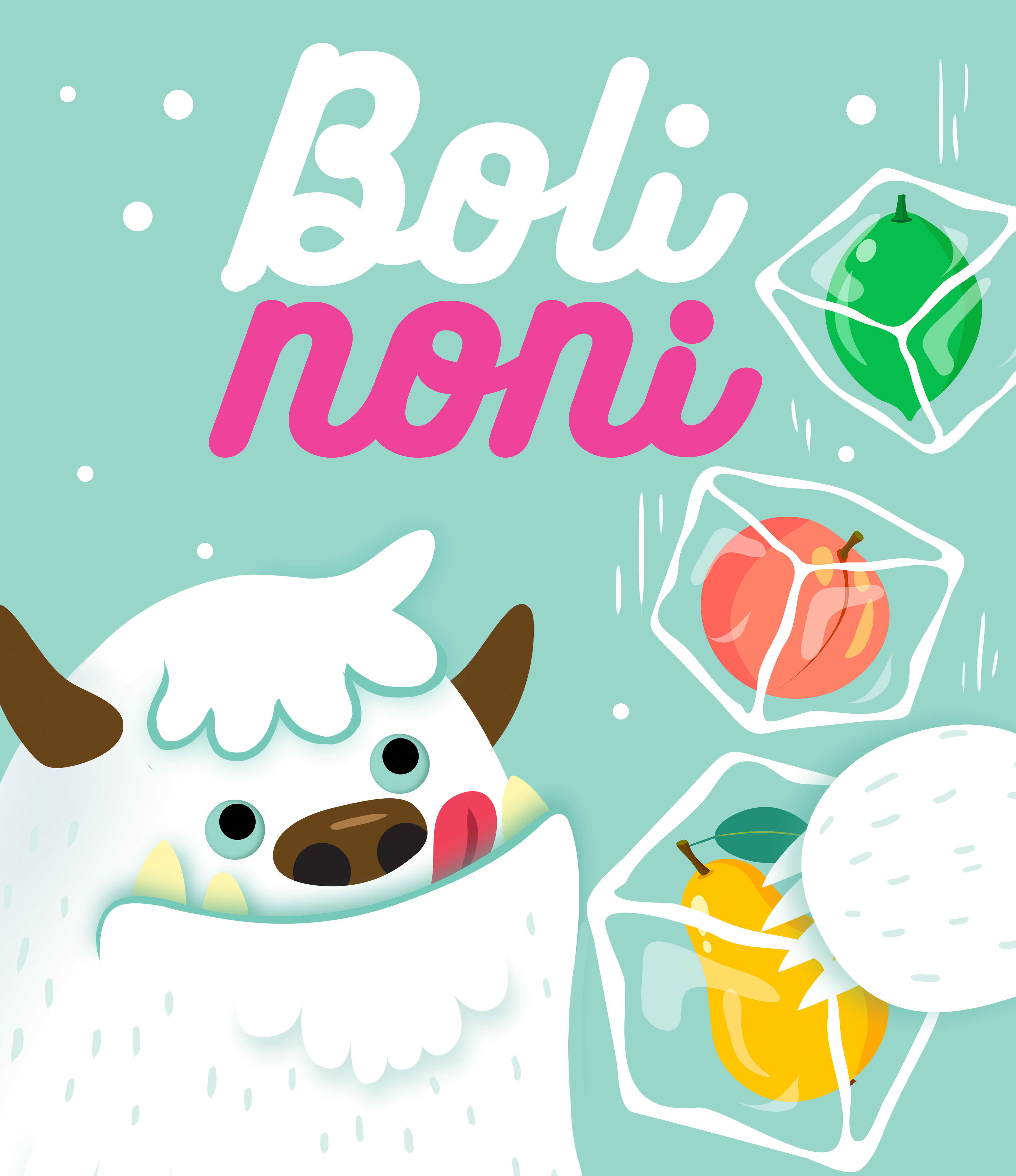 Diseño de personaje para una marca de raspados de fruta.