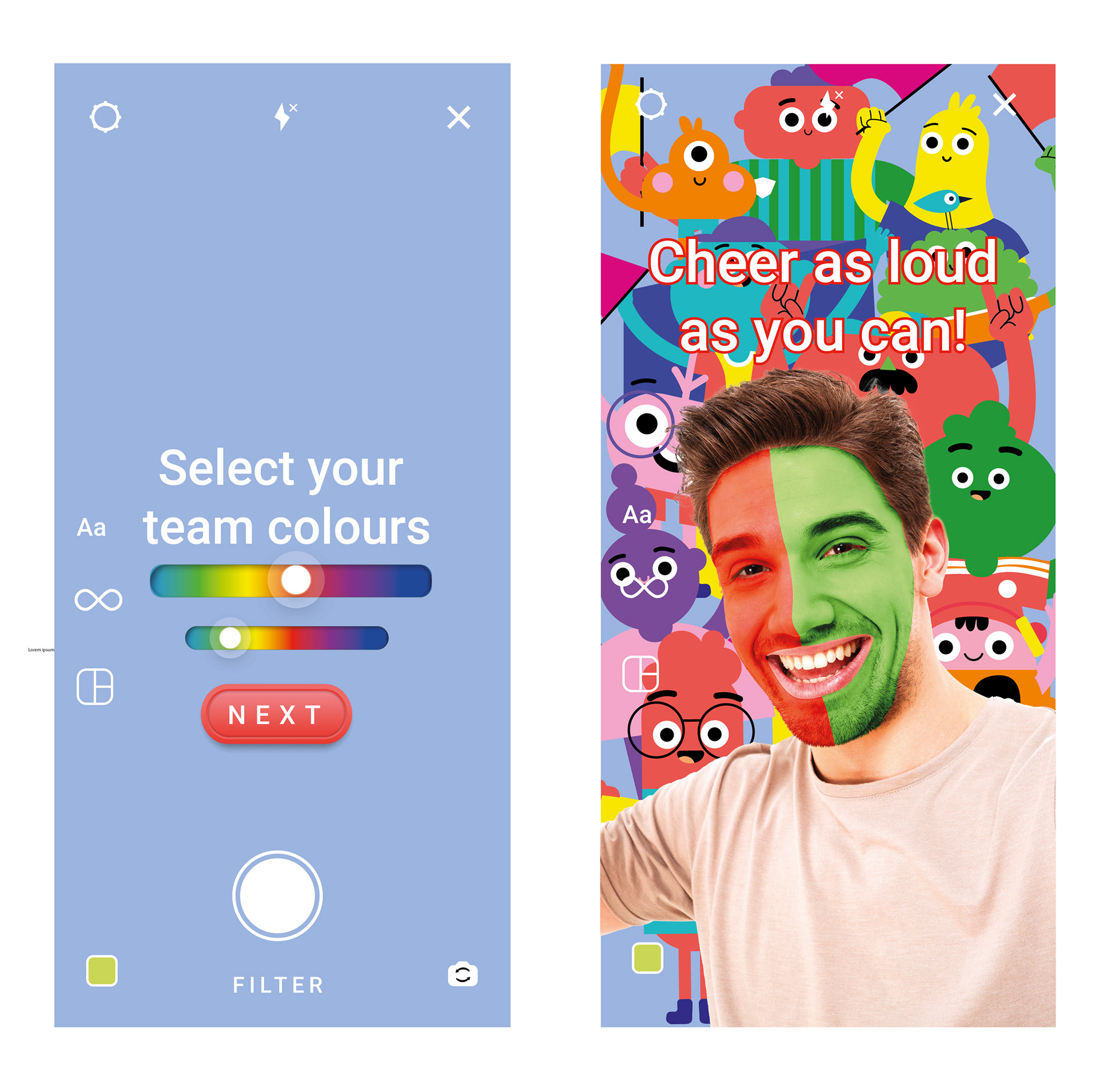 Illustrations and character design for Vodafone's Instagram filter for the world cup